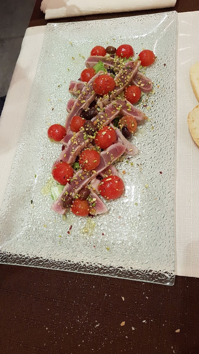 If you're in the mood for something with a bit more heartiness, try the Tagliata Di Tonno Con Pomodorini E Olive. This tuna steak is grilled to perfection, complemented by juicy tomatoes and olives that enhance its rich, savory flavor. Another standout dish is the Tonno Con Stracciatella, a combination of tender tuna and creamy stracciatella cheese, creating a delightful contrast of textures and flavors that will leave you craving more.